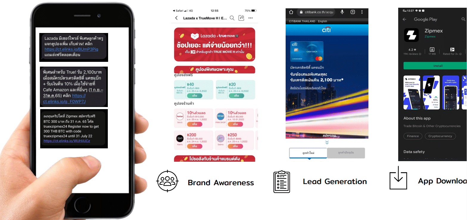 - สื่อสารถึงกลุ่มเป้าหมาย โดยไม่ต้องมีฐานข้อมูลเบอร์โทรของลูกค้า