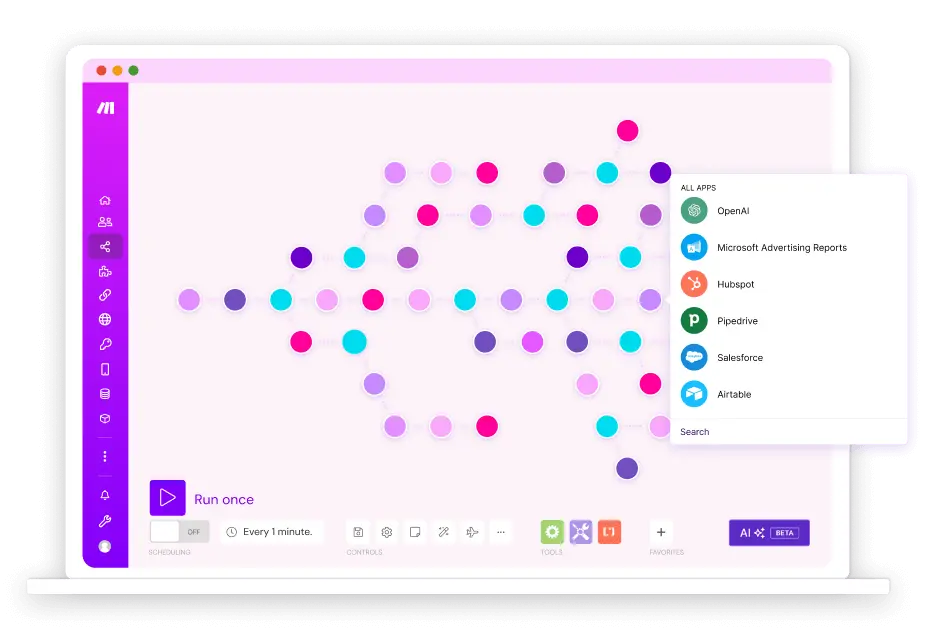 Make.com คือแพลตฟอร์มออนไลน์ที่ช่วยให้คุณเชื่อมต่อและทำให้แอปพลิเคชันต่างๆ ทำงานร่วมกันได้โดยอัตโนมัติ โดยไม่จำเป็นต้องเขียนโค้ด คล้ายกับการต่อเลโก้ คุณสามารถสร้างขั้นตอนอัตโนมัติ เช่น เมื่อมีอีเมลใหม่เข้ามา ให้บันทึกข้อมูลลงในสเปรดชีต และส่งข้อความแจ้งเตือนผ่านไลน์ ช่วยประหยัดเวลาและลดงานที่ต้องทำซ้ำๆ ในชีวิตประจำวันหรือธุรกิจ